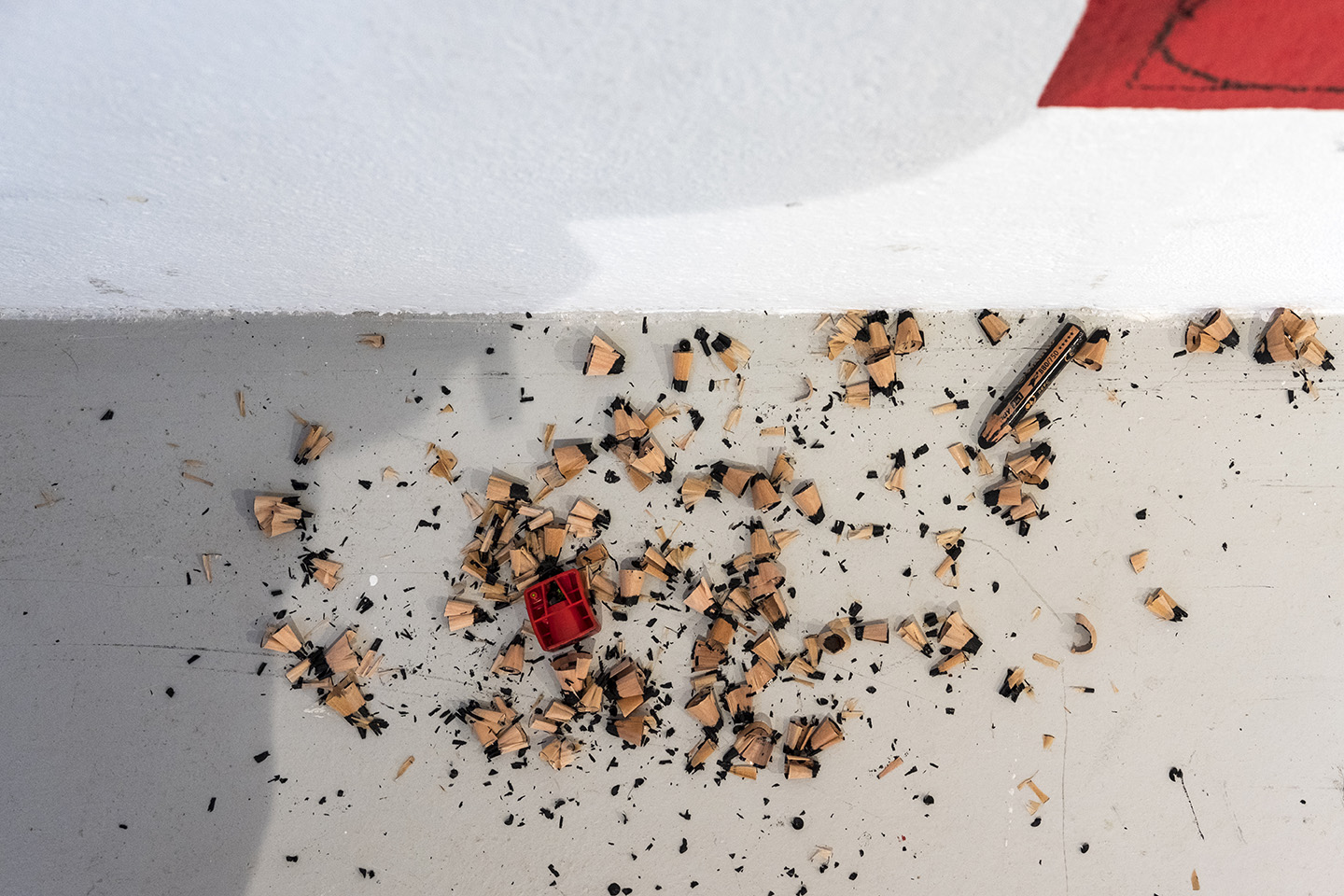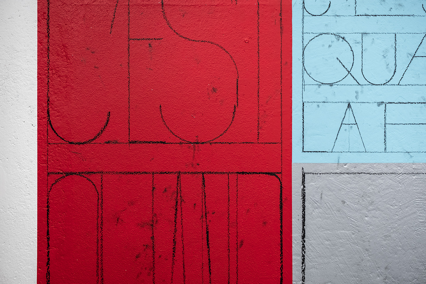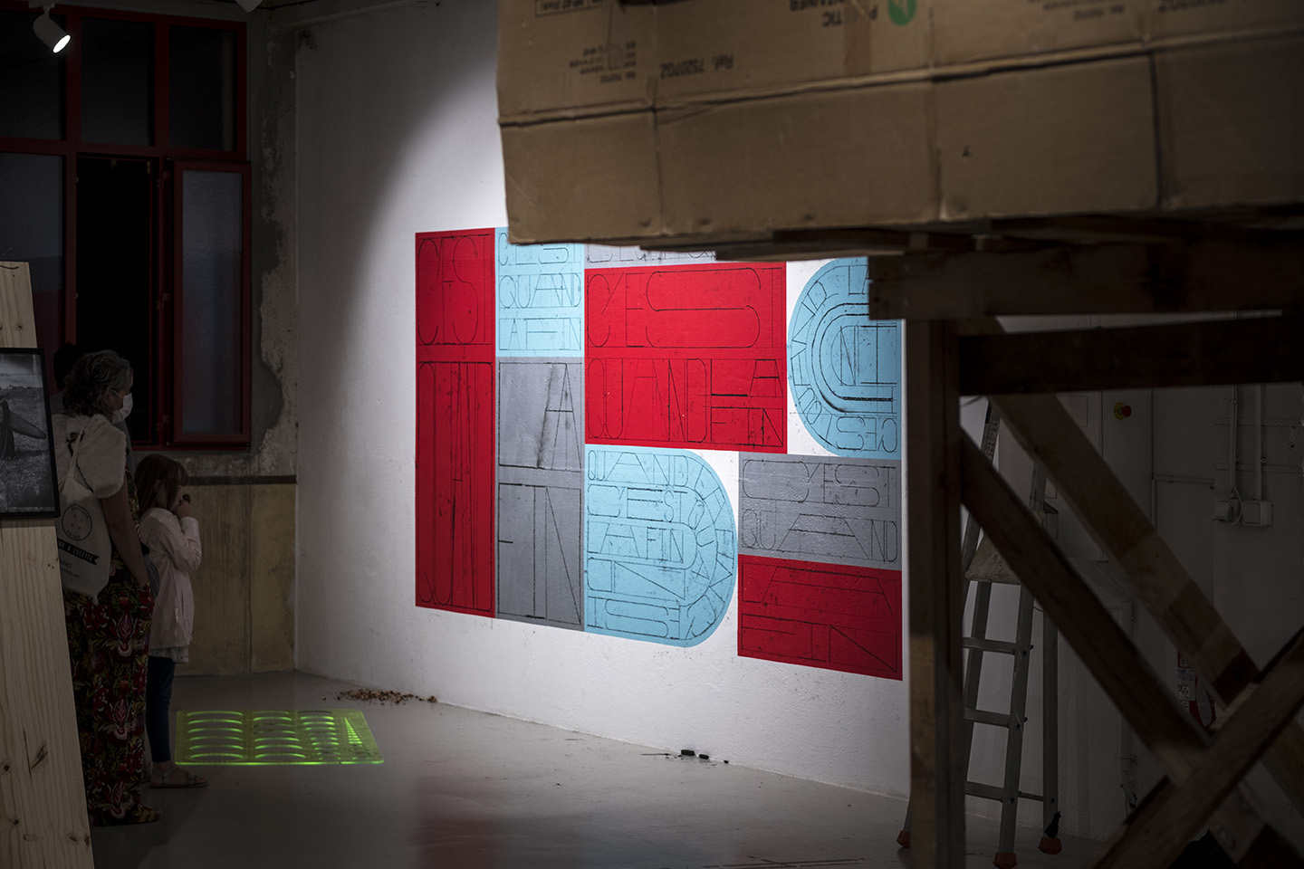 « C’est quand la fin, une question sans ponctuation qui se joue telle un aveu d’espoir, de désespoir, d’ennui, d’impatience. Œuvre active tout au long de l’exposition, Sixtine Gervais trace au normographe, conçu pour l’occasion, cette non-question qui envisage trop de suite ou n’en attend pas du tout. »