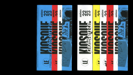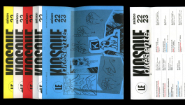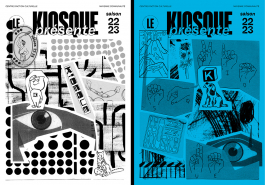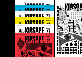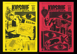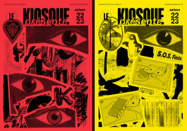 La saison 22/23 se révèle au public par l’affiche de saison présente dans la ville de Mayenne. L’affiche s’inspire des unes de journaux qui se superposent, se dévoilent et s’entassent dans les kiosques. Elle propose un questionnement entre ce qui est visible et ce qui ne l’est pas, entre le réel et le fictif, et fait ainsi écho aux arts visuels et aux arts du spectacle. Le public découvre ensuite les programmes dévoilant les différents visuels, qui composent l’affiche de saison. Par l’association d’images et de références populaires, l’identité graphique propose une aventure plastique, livre une atmosphère et un imaginaire qui raconte le Kiosque et sa saison. Il permet à chacun d’avoir sa propre lecture et met en avant l’humain et la fragilité qui le constitue.