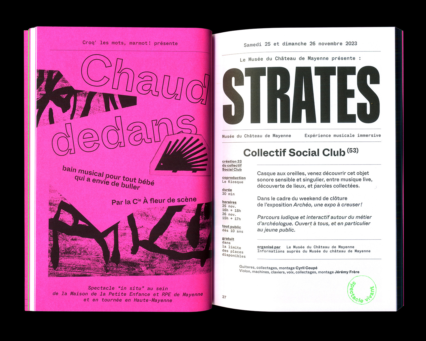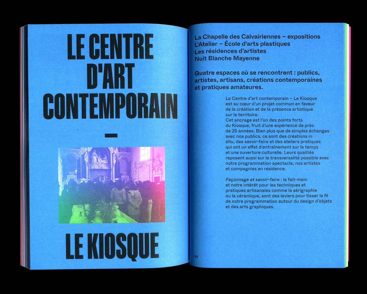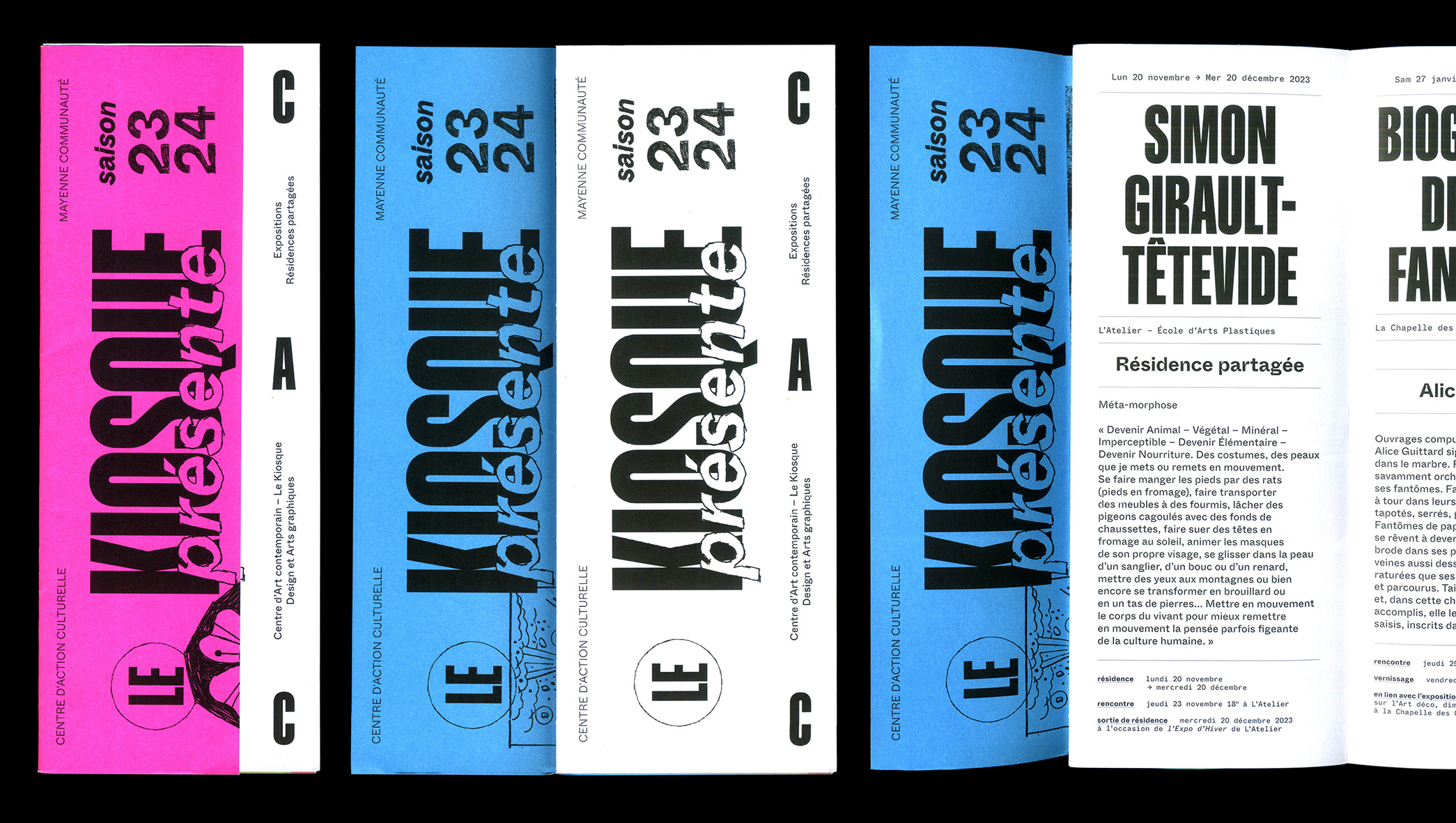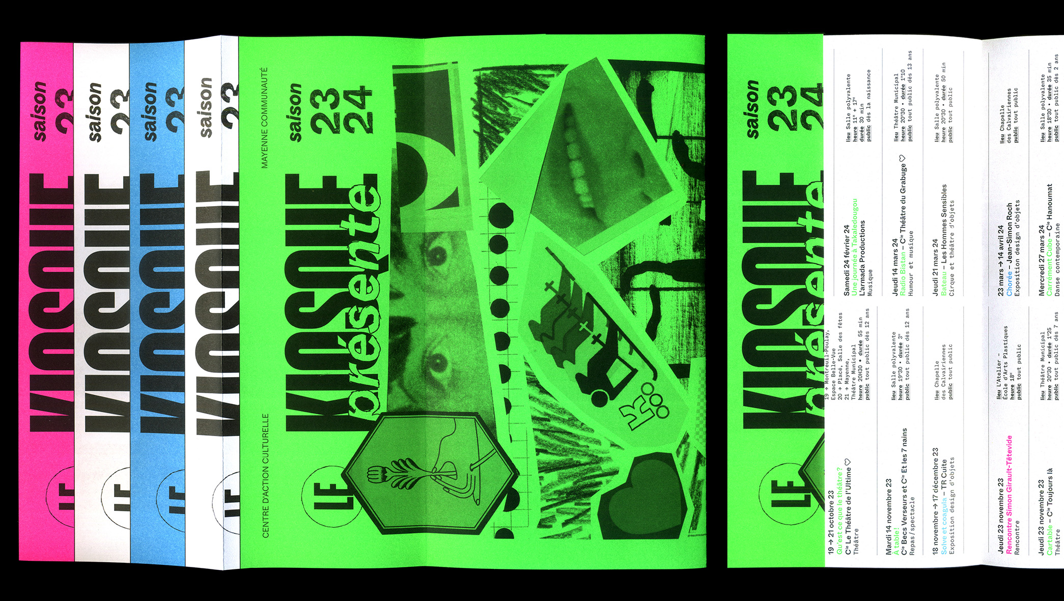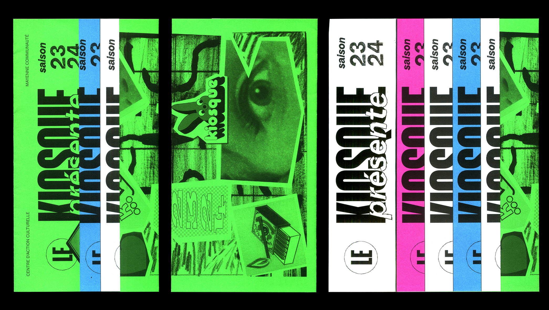 Identité visuelle de la saison 2023–2024 du Kiosque – Centre d'Action Culturelle Mayenne Communauté.